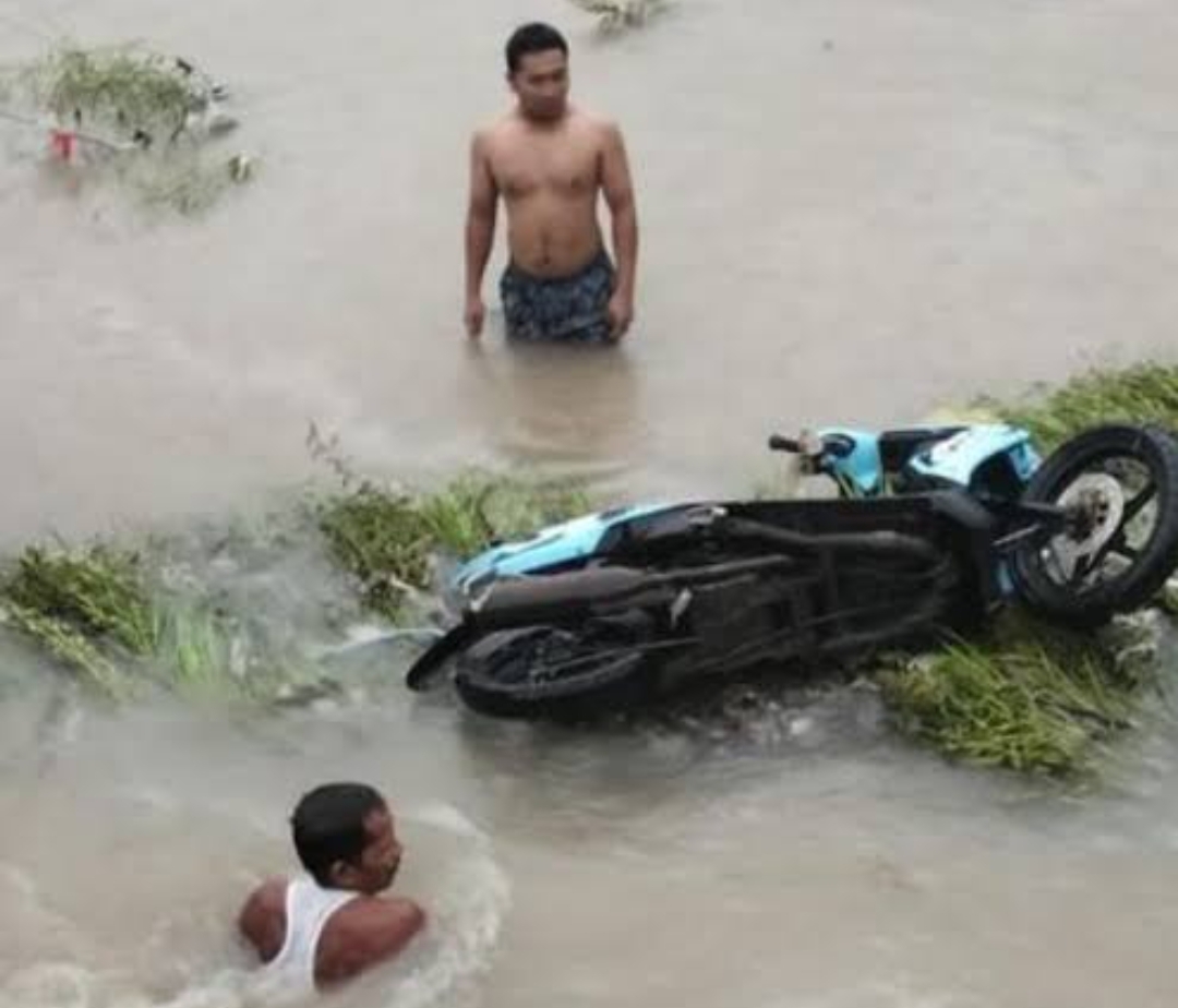 Insiden terjadi saat keduanya melintas di Banjar Munduk. Tiba-tiba arus banjir yang deras menyeret motor beserta penumpangnya.